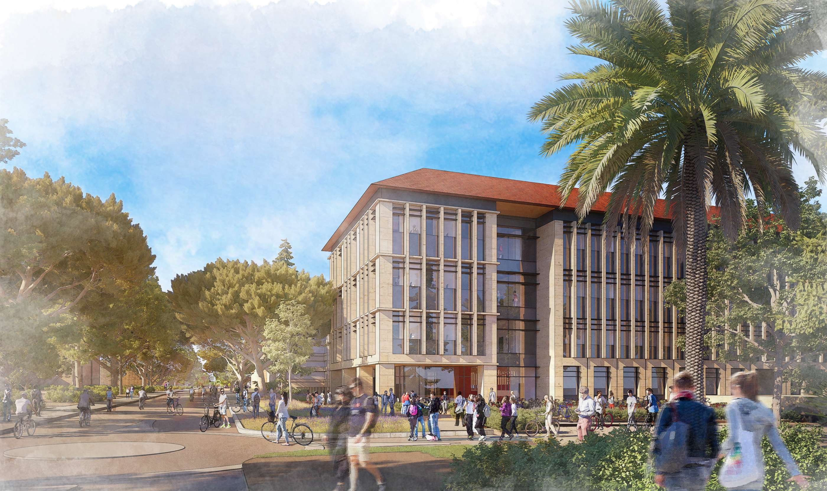 Exterior rendering of the Computing and Data Science building, opened in 2025. The building, nicknamed CoDa, is home to faculty from the Departments of Computer Science and Statistics, a cross-university data science initiative, and undergraduate programs in computer science, data science, and symbolic systems. Built jointly with the School of Humanities and Sciences, the building reflects the growing importance of data science in all areas of scholarship. | LMN Architects.